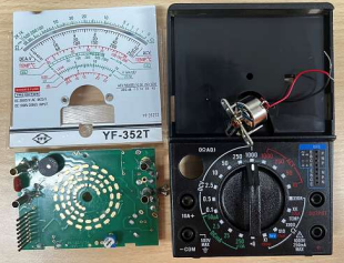 有次偶然在材料室裡找到一台學長丟棄的指針式三用表,拆開後使用儀表測量,發現只有表頭還能正常工作,但是內部電路已經完全氧化不能使用。所以我將電路丟棄,自主學習利用這個表頭設計歐姆檔。